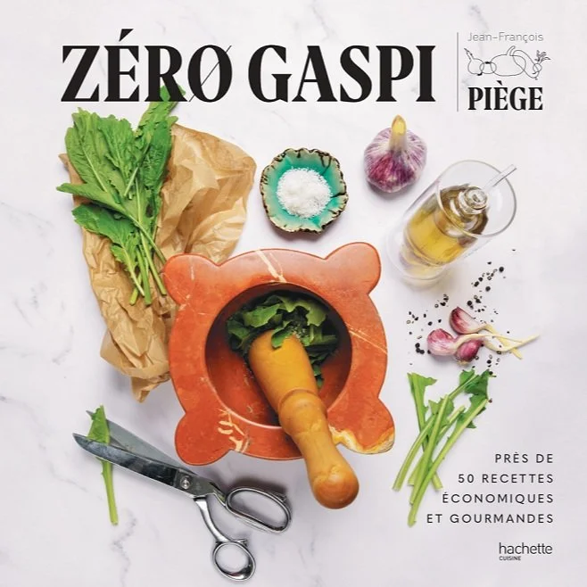 Après « Zéro Gras » et « Zéro viande zéro poisson », Jean-François Piège a décidé de traiter le thème du gaspillage en cuisine. Ce nouvel ouvrage s'intitule « Zéro gaspi ». Il est question ici de donner quelques astuces gourmandes pour éviter de trop "jeter". Le propos est simple : comment utiliser les ingrédients du quotidien dans leur intégralité.